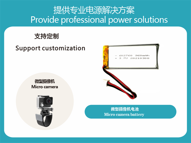 The emergence of various camera equipment has enriched people’s lives and improved people’s quality of life. Cameras need a relatively stable and safe power supply system, while high-end miniature sports cameras and aerial cameras for sports enthusiasts have higher battery requirements. For this reason, our company has specially developed anti-vibration sports battery. Its specific characteristics are: the battery structure is integrated with the camera and is anti-drop, good electrical contact, good charge and discharge performance, long cycle life, Good high and low temperature performance, with overcharge, overdischarge, and short circuit protection